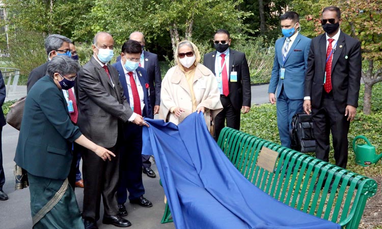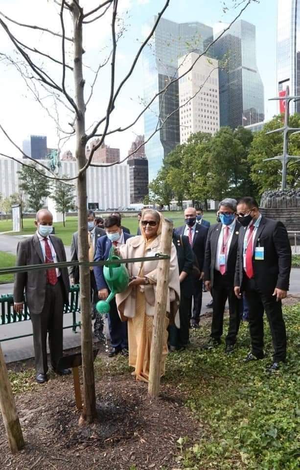 যুক্তরাষ্ট্র অফিস: প্রধানমন্ত্রী শেখ হাসিনা আজ নিউইয়র্কের স্থানীয় সময় বেলা সাড়ে ১১ টায় জাতির পিতা বঙ্গবন্ধু শেখ মুজিবুর রহমানের জন্মশত বার্ষিকী উপলক্ষে জাতিসংঘ সদর দপ্তরের উত্তরের লনের বাগানে একটি বৃক্ষরোপণ করেন এবং একটি বেঞ্চ উৎসর্গ করেন।