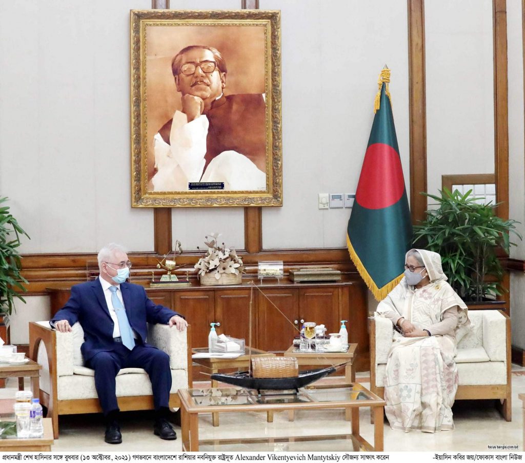 বুধবার প্রধানমন্ত্রী শেখ হাসিনার সঙ্গে তাঁর গণভবনে বাংলাদেশে নবনিযুক্ত রাশিয়ার রাষ্ট্রদূত আলেকজান্ডার ভিকেন্তিয়েভিচ ম্যান্টিটস্কি সাক্ষাত করতে এলে তিনি এ কথা বলেন।