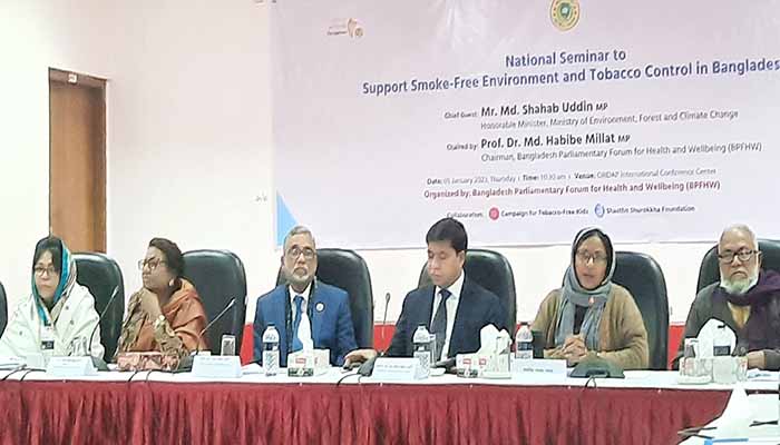 বৃহস্পতিবার রাজধানীর সিরডাপ মিলনায়তনে বাংলাদেশ পার্লামেন্টারি ফোরাম ফর হেলথ এন্ড ওয়েলবিং আয়োজিত ‘ন্যাশনাল সেমিনার টু সাপোর্ট স্মোক ফ্রি এনভায়রনমেন্ট এন্ড টোবাকো কন্ট্রোল ইন বাংলাদেশ’ শীর্ষক জাতীয় সেমিনারে প্রধান অতিথির বক্তব্যে পরিবেশমন্ত্রী এসব কথা বলেন।