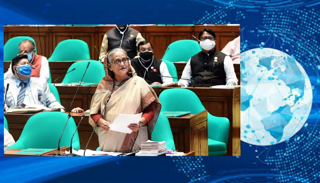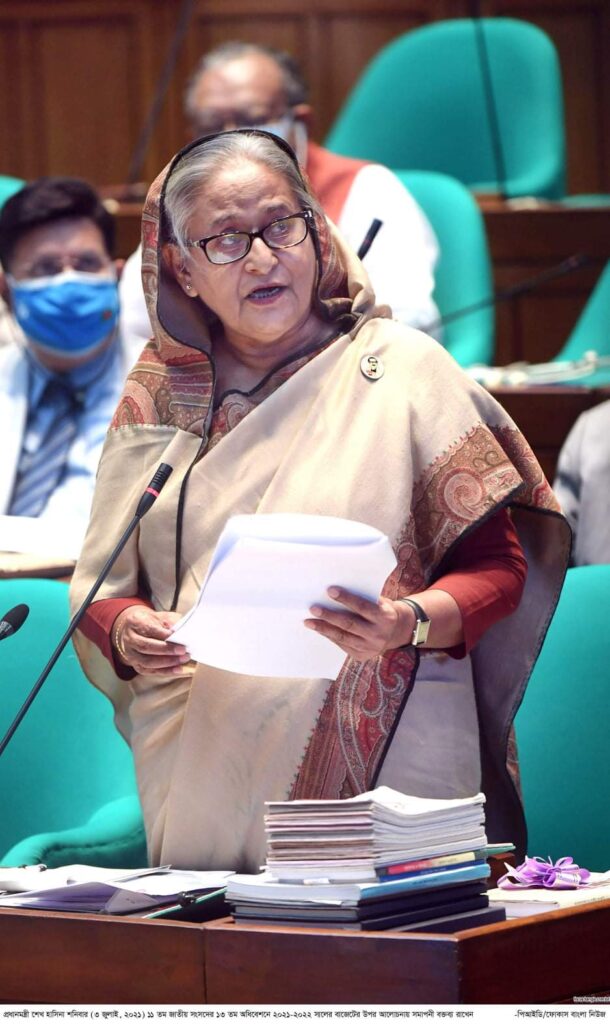 করোনার টিকার আর সমস্যা হবে না জানিয়ে প্রধানমন্ত্রী বলেন, ফাইজার, মডার্না ও সিনোফার্মের টিকা এসেছে। টিকার জন্য চীন, রাশিয়া, যুক্তরাষ্ট্র, জাপান, অস্ট্রেলিয়া—সব জায়গায় যোগাযোগ করা হচ্ছে। টিকার জন্য পর্যাপ্ত টাকা রাখা হয়েছে বাজেটে। কোনো সমস্যা হবে না। তিনি আরও বলেন, অনেক দাম দিয়ে টিকা কেনা হচ্ছে। কিন্তু মানুষকে এই টিকা বিনা মূল্যে দেওয়া হচ্ছে। সীমান্ত এলাকায় যেখানে সংক্রমণ বেড়ে গেছে, সেখানে বিনা মূল্যে করোনার পরীক্ষা করা হচ্ছে। বিদেশগামীদের টিকার ক্ষেত্রে অগ্রাধিকার দেওয়া হচ্ছে।বিএনপির সমালোচনা করে প্রধানমন্ত্রী বলেন, দলটি গণতন্ত্রের কথা বলে। অথচ এর জন্ম সামরিক স্বৈরশাসক জিয়াউর রহমানের পকেট থেকে। তিনি একাধারে রাষ্ট্রপতি ও প্রধান সেনাপতি ছিলেন। এটা একমাত্র খুনি আইয়ুব খান করেছিলেন। ‘বিএনপি’ শব্দের ব্যাখ্যা দিতে গিয়ে হেসে ফেলেন প্রধানমন্ত্রী। তিনি বলেন, ‘বিএনপি মানে বাংলাদেশ, না। পাকিস্তান, হ্যাঁ। এই তো তাদের দল।’এখন দেশের ৯৯ শতাংশ মানুষ বিদ্যুৎ পাচ্ছে—এটা বিএনপির সহ্য হচ্ছে না। তাদের সময় দুর্নীতির দায়ে বিশ্বব্যাংক টাকা দেওয়া বন্ধ করে দিয়েছিল। বিদ্যুৎ চাইলে চাঁপাইনবাবগঞ্জে মানুষকে গুলি করে হত্যা করা হয়। সার চাইলে কৃষককে হত্যা করা হয়। রোজার মাসে বেতন চাওয়ায় শ্রমিকদের গুলি করে মারা হয়।