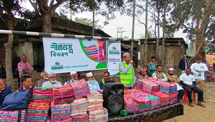 জয়তুন ওয়েলফেয়ার ট্রাস্টের উদ্যোগে রবিবার (৫ ফেব্রুয়ারী) রেবতীরমন উচ্চ বিদ্যালয় মাঠে মোগলাবাজার ইউনিয়নের ১২০০শত পরিবারের মধ্যে শীতবস্ত্র বিতরণ করা হয়।