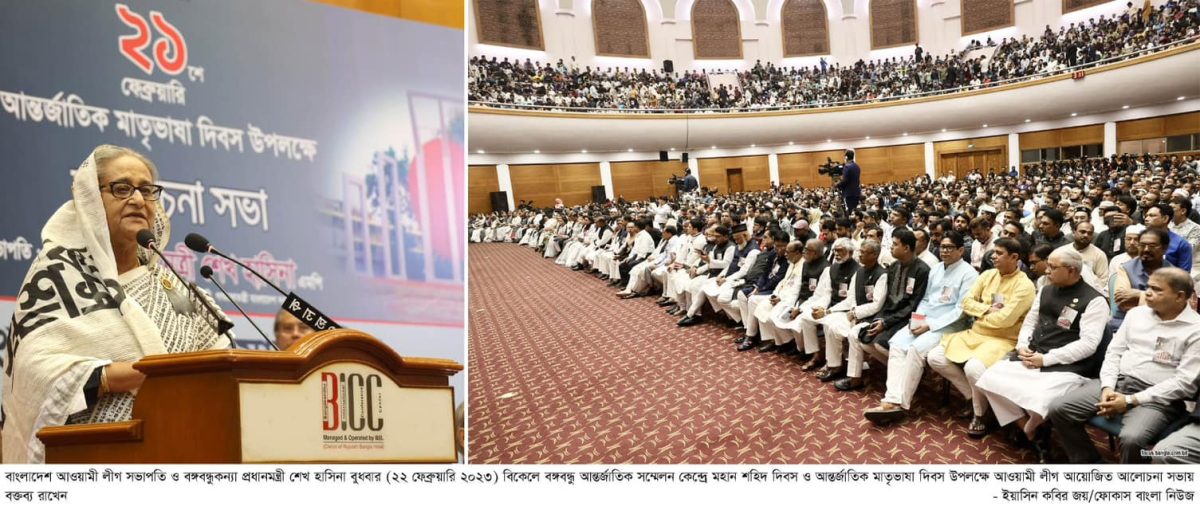 মহান শহীদ দিবস ও আন্তর্জাতিক মাতৃভাষা দিবস উপলক্ষে আজ বুধবার বঙ্গবন্ধু আন্তর্জাতিক সম্মেলন কেন্দ্রে আওয়ামী লীগ আয়োজিত আলোচনা সভায় এসব কথা বলেন প্রধানমন্ত্রী।
