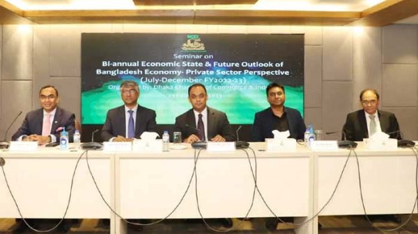 ঢাকা চেম্বার অব কমার্স অ্যান্ড ইন্ডাস্ট্রি (ডিসিসিআই) আয়োজিত ‘বেসরকারিখাতের দৃষ্টিতে ২০২২-২৩ অর্থবছরের প্রথমার্ধে (জুলাই-ডিসেম্বর ২০২২) বাংলাদেশের অর্থনীতির সামগ্রিক পর্যালোচনা’ শীর্ষক সেমিনার অদ্য ২৩ ফেব্রুয়ারি, ২০২৩ তারিখে অনুষ্ঠিত হয়। সেমিনারে বাণিজ্য মন্ত্রণালয়ের সিনিয়র সচিব তপন কান্তি ঘোষ প্রধান অতিথি যোগদান করেন। এছাড়া, বাংলাদেশ বিনিয়োগ উন্নয়ন কর্তৃপক্ষের (বিডা) সচিব (অতিরিক্ত দায়িত্ব) মোহসিনা ইয়াসমিন বিশেষ অতিথি হিসেবে ভার্চুয়ালি অংশগ্রহণ করেন।