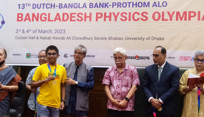ডাক ও টেলিযোগাযোগ মন্ত্রী এবং ফিজিক্স অলিম্পিয়াডের অন্যতম পৃষ্ঠপোষক মোস্তাফা জব্বার বলেছেন, মাননীয় প্রধানমন্ত্রী ঘোষিত স্মার্ট বাংলাদেশ গড়ার জন্য ফিজিক্স অলিম্পিয়াডের ক্ষুদে শিক্ষার্থীদের জ্ঞান ও মেধাকে দেশের মানুষের কল্যাণে ব্যবহার করতে হবে। তিনি বলেন, মেধাশ্রম দিয়ে নিজেদের তৈরি হতে হবে এবং বিশ্ব জয় করার লক্ষ্যে এগিয়ে যেতে হবে। শনিবার (৪ মার্চ) ঢাকা বিশ্ববিদ্যালয়ের নবাব নওয়াব আলী চৌধুরী সিনেট ভবনে ১৩তম ফিজিক্স অলিম্পিয়াড পুরস্কার বিতরণ অনুষ্ঠানে প্রধান অতিথির বক্তব্যে ডাক ও টেলিযোগাযোগ মন্ত্রী মোস্তাফা জব্বার এসব কথা বলেন।