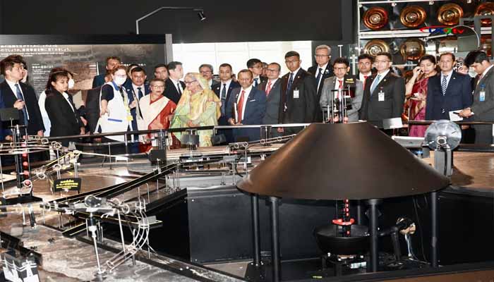 এ সময় সঙ্গে ছিলেন, জাতির পিতা বঙ্গবন্ধু শেখ মুজিবুর রহমানের কনিষ্ঠ কন্যা শেখ রেহানা, পররাষ্ট্র প্রতিমন্ত্রী শাহরিয়ার আলম, তথ্য ও যোগাযোগ প্রযুক্তি প্রতিমন্ত্রী জুনাইদ আহমেদ পলক, জাপানে বাংলাদেশের রাষ্ট্রদূত শাহাবুদ্দিন আহমেদ, বাংলাদেশ জাতীয় জাদুঘরের মহাপরিচালক মো. কামরুজ্জামান ও প্রধানমন্ত্রীর কার্যালয়ের সচিব মোহাম্মদ সালাহউদ্দিন।