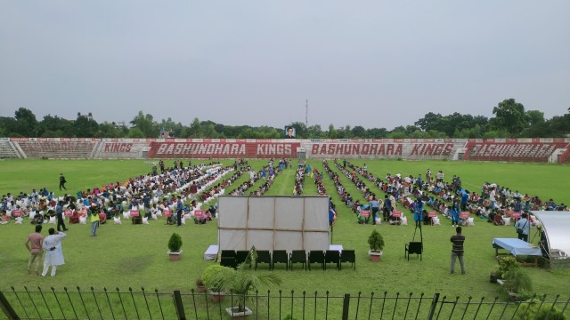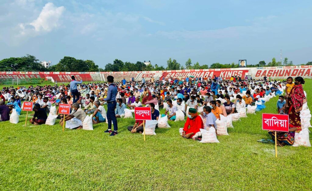 শুক্রবার (১৬ জুলাই) বিকেলে সদর উপজেলা পরিষদের আয়োজন নীলফামারী শেখ কামাল স্টেডিয়াম মাঠে স্বাস্থ্যবিধি ও সামাজিক দূরত্ব বজায় রেখে ত্রাণ সামগ্রী বিতরণ করা হয়।