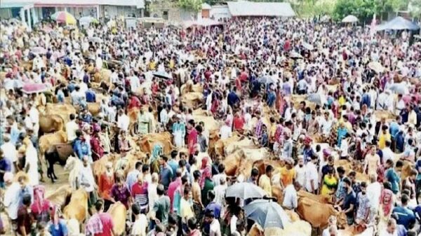 নওগাঁর বদলগাছীতে জমে উঠেছে কোরবানির হাট। দূর দূরান্ত থেকে কোরবানির পশু নিয়ে ক্রেতা বিক্রেতা আসছে কোলার হাটে। কোরবানির পশু বেচাকেনায় অতিরিক্ত টোল আদায় প্রক্রিয়া নিয়ে সক্রিয় হয়ে উঠেছে হাট ইজারাদার। এই উপজেলায় দুটি গরু ছাগল কেনাবেচার হাট রয়েছে । তার মধ্যে বৃহৎ হাট হচ্ছে কোলা, অপরটি গোবরচাঁপা হাট।