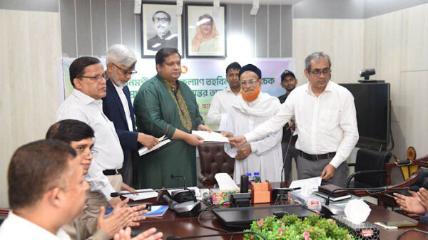 যুব ও ক্রীড়া মন্ত্রণালয়ের সম্মেলন কক্ষে সোমবার (১৯ জুন) দুপুরে প্রধানমন্ত্রী কর্তৃক ৫ জন ক্রীড়াবিদ ও ক্রীড়াসংগঠককে চিকিৎসা সহায়তা হিসেবে প্রদত্ত ৯১ লক্ষ টাকার আর্থিক অনুদানের চেক হস্তান্তর করেছেন যুব ও ক্রীড়া প্রতিমন্ত্রী মোঃ জাহিদ আহসান রাসেল এমপি।