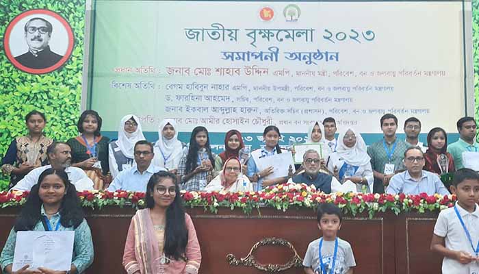 অনুষ্ঠানে ‘বৃক্ষরোপণে প্রধানমন্ত্রীর জাতীয় পুরস্কার ২০২১’ বিজয়ী, জাতীয় বৃক্ষরোপণ অভিযান ও বৃক্ষমেলা ২০২৩ উপলক্ষ্যে আয়োজিত রচনা ও চিত্রাঙ্কন প্রতিযোগিতার বিজয়ীবৃন্দ; বৃক্ষমেলার স্টল মালিকদের মাঝে পুরস্কার বিতরণ করা হয়।