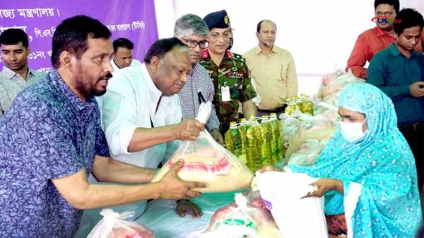 তিনি তাঁর বক্তব্যে আরো বলেন, টিসিবির মাধ্যমে বাণিজ্য মন্ত্রণালয় এক কোটি ফ্যামিলি কার্ডের মাধ্যমে নিম্ন আয়ের পরিবারের মাঝে ডাল, চিনি এবং তেলের পাশাপাশি গতমাসে থেকে প্রধানমন্ত্রী শেখ হাসিনার নির্দেশে চাল দেয়া শুরু হয়েছে। গরীব মানুষ কষ্টে থাকুক শেখ হাসিনা এটা কখনোই চাননা।