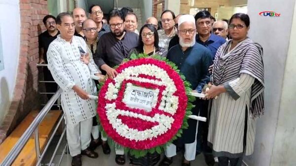 মঙ্গলবার (১৫ আগস্ট) বেলা সোয়া ১১টায় প্রেসক্লাবের সভাপতি ফরিদা ইয়াসমিন ও সাধারণ সম্পাদক শ্যামল দত্তের নেতৃত্বে বঙ্গবন্ধুর প্রতিকৃতিতে পুষ্পস্তবক অর্পণ করা হয়।