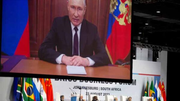 সম্মেলন শুরুর দিনে ভিডিও বার্তার মাধ্যমে বক্তব্য দেন তিনি। আন্তর্জাতিক অপরাধ আদালতের গ্রেপ্তারি পরোয়ানার কারণে সম্মেলনে সরাসরি উপস্থিত হতে পারেননি পুতিন। খবর বিবিসি, সিএনএনের।