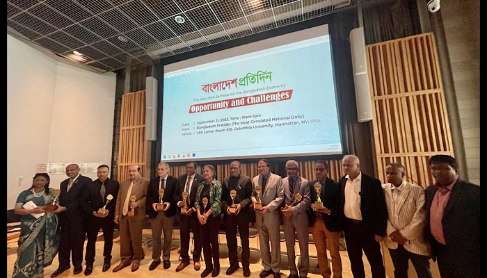 মূল বক্তা ছিলেন বাংলাদেশ ব্যাংকের সাবেক গভর্নর, উন্নয়ন অর্থনীতিবিদ ও ঢাকা বিশ্ববিদ্যালয়ের ইমেরিটাস অধ্যাপক ড. আতিউর রহমান। সঞ্চালনায় ছিলেন বাংলাদেশ ব্যাংকের সাবেক প্রধান অর্থনীতিবিদ এবং নিউইয়র্ক স্টেট ইউনিভার্সিটির অধ্যাপক ড. বিরূপাক্ষ পাল। আলোচক প্যানেলে ছিলেন জাতিসংঘের ডেভেলপমেন্ট রিসার্চ টিমের সাবেক প্রধান ড. নজরুল ইসলাম, কলোরাডো ইউনিভার্সিটির অধ্যাপক ড. ফরিদা চৌধুরী খান, পরিবেশ ও পানি বিজ্ঞানী ড. সুফিয়ান এ খন্দকার, মনমাউথ ইউনিভার্সিটির ডক্টর অব সোশ্যাল প্রোগ্রামের ডিরেক্টর অধ্যাপক গোলাম এম মাতবর, কলাম্বিয়া ইউনিভার্সিটির অধ্যাপক ড. মাইকেল স্টেকলার। সেমিনারে আরও বক্তব্য দেন ঢাকা জাতীয় প্রেসক্লাবের সভাপতি ফরিদা ইয়াসমীন , জর্জিয়া স্টেট সিনেটর শেখ রহমান, স্টেট সিনেটর মাসুদুর রহমান, স্টেট রিপ্রেজেনটেটিভ আবুল বি খান ও মেলবোর্ন শহরের মেয়র মাহবুবুল আলম তৈয়ব।