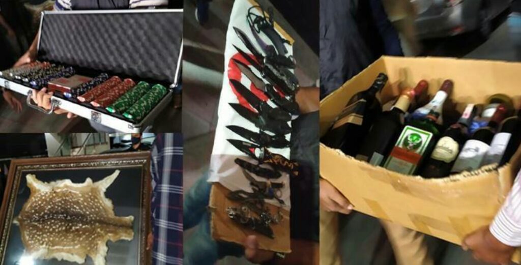 র্যাব জানায়, হেলেনা জাহাঙ্গীরের বাসায় অভিযান চালিয়ে ১৭ বোতল বিদেশি মদ ও বেশ কিছু ইয়াবা উদ্ধার করা হয়েছে। এছাড়াও তার বাসা অননুমোদিতভাবে রাখা হরিণের চামড়া ও ওয়াকিটকিও উদ্ধার করা হয়েছে। এসময় তার ব্যবহৃত দুটি অস্ত্র পাওয়া গেছে। তবে সেগুলোর বৈধ কাগজ রয়েছে।