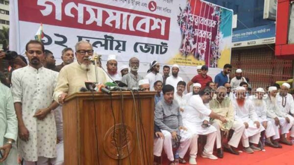 শুক্রবার (২৯ সেপ্টেম্বর) বিকেলে রাজধানীর বিজয়নগর পানির টাংকির সামনে ১২ দলীয় জোট আয়োজিত খালেদা জিয়ার মুক্তি ও সুচিকিৎসা এবং সরকার পতনের একদফা দাবিতে এক বিশাল গণ সমাবেশে প্রধান অতিথির বক্তব্যে তিনি এসব কথা বলেন।