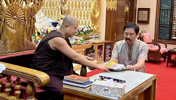 রবিবার (২৯ অক্টোবর) রাতে বান্দরবান শহরের কালাপাড়া স্বর্ণমন্দিরে মারমা সম্প্রদায়ের প্রাণের উৎসব মাহা ওয়াগোয়াই পোয়েঃ ও প্রবারণা পূর্ণিমার দুইদিনব্যাপী অনুষ্ঠানের উদ্বোধনী দিনে হাজারো ভক্তকূলের সাথে পার্বত্যমন্ত্রী বীর বাহাদুর উশৈসিং এমপি বন্দনায় অংশ নেন।
