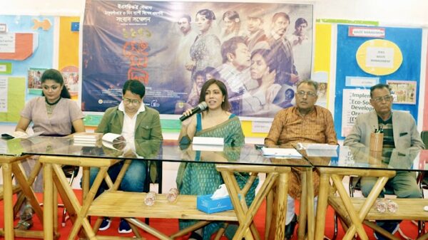 ইএসডিও’র আয়োজনে প্রেস কনফারেন্সে বক্তব্য রাখেন চলচিত্রটির শিল্প নির্দেশক নাট্য অভিনেতা লিটু আনাম, চিত্রনাট্য ও পরিচালক হৃদি হক, অভিনেত্রী মৌসুমি হামিদ, ইএসডিও’র প্রতিষ্ঠাতা নির্বাহী পরিচালক ড. মুহম্মদ শহীদ উজ জামান, ইকো পাঠশালা এন্ড কলেজের অধ্যক্ষ ড. সেলিমা আখতার, ঠাকুরগাঁও প্রেসক্লাব সভাপতি মনসুর আলী, সাধারণ সম্পাদক লুৎফর রহামান মিঠু, চলচিত্রটির চিত্রগ্রাহক মেহেদি রনি, ফরহাদ হোসেন প্রমুখ। এ সময় জেলায় কর্মরত বিভিন্ন প্রিন্ট ও ইলেকট্রনিক মিডিয়ার সাংাবিদকবৃন্দ উপস্থিত ছিলেন।