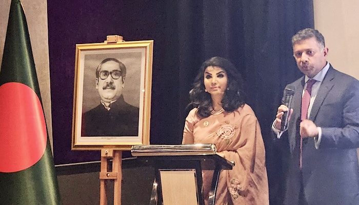 হাইকমিশনার সাইদা মুনা তাসনিম তার স্বাগত বক্তব্যে প্রধানমন্ত্রী শেখ হাসিনা এবং ভারতের প্রধানমন্ত্রী স্যার নরেন্দ্র মোদিকে এপ্রিল মাসে নয়াদিল্লির হায়দ্রাবাদ হাউসে এক অনুষ্ঠানে বঙ্গবন্ধুর জীবন ও উত্তরাধিকারের ওপর বায়োপিক তৈরির পরিকল্পনা যৌথভাবে ঘোষণা করার জন্য ধন্যবাদ জানান।