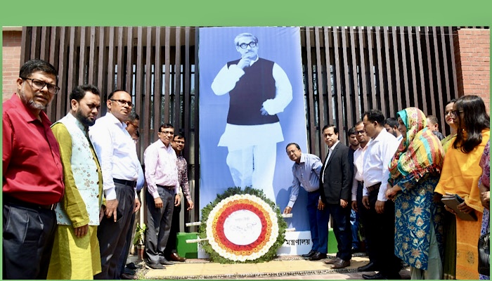 রবিবার (১৭ মার্চ) রাজধানীর বেইলী রোডে শেখ হাসিনা পার্বত্য চট্টগ্রাম কমপ্লেক্স ভবনের সভাকক্ষে জাতির পিতা বঙ্গবন্ধু শেখ মুজিবুর রহমানের ১০৪তম জন্মবার্ষিকী ও জাতীয় দিবস-২০২৪ উদযাপন উপলক্ষ্যে আয়োজিত আলোচনা ও দোয়া মাহফিল অনুষ্ঠানে সভাপতির বক্তব্যে পার্বত্য চট্টগ্রাম বিষয়ক মন্ত্রণালয়ের সচিব মো. মশিউর রহমান এনডিসি এসব কথা বলেন।